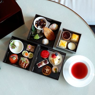 「ロビーラウンジ」、「オールデイダイニング」では和洋を織り交ぜ重箱に入れられたスイーツが味わえます。三段のお重に入れられたスイーツは、見た目も豪勢でわくわくしますよね!