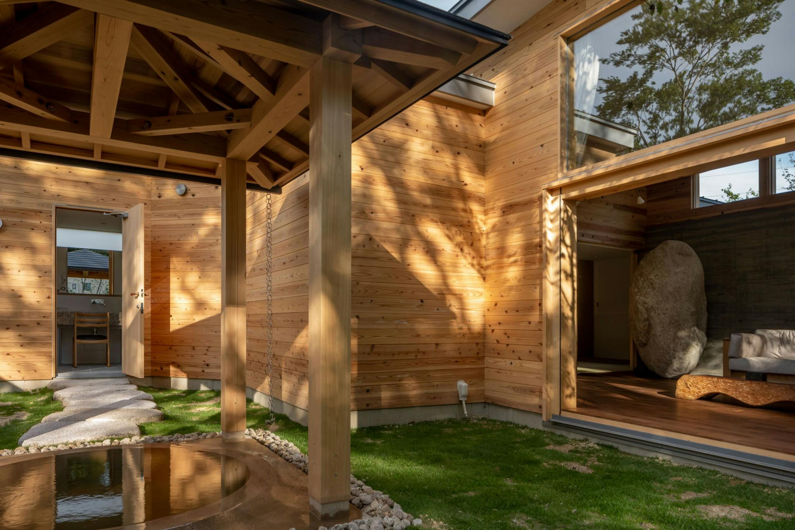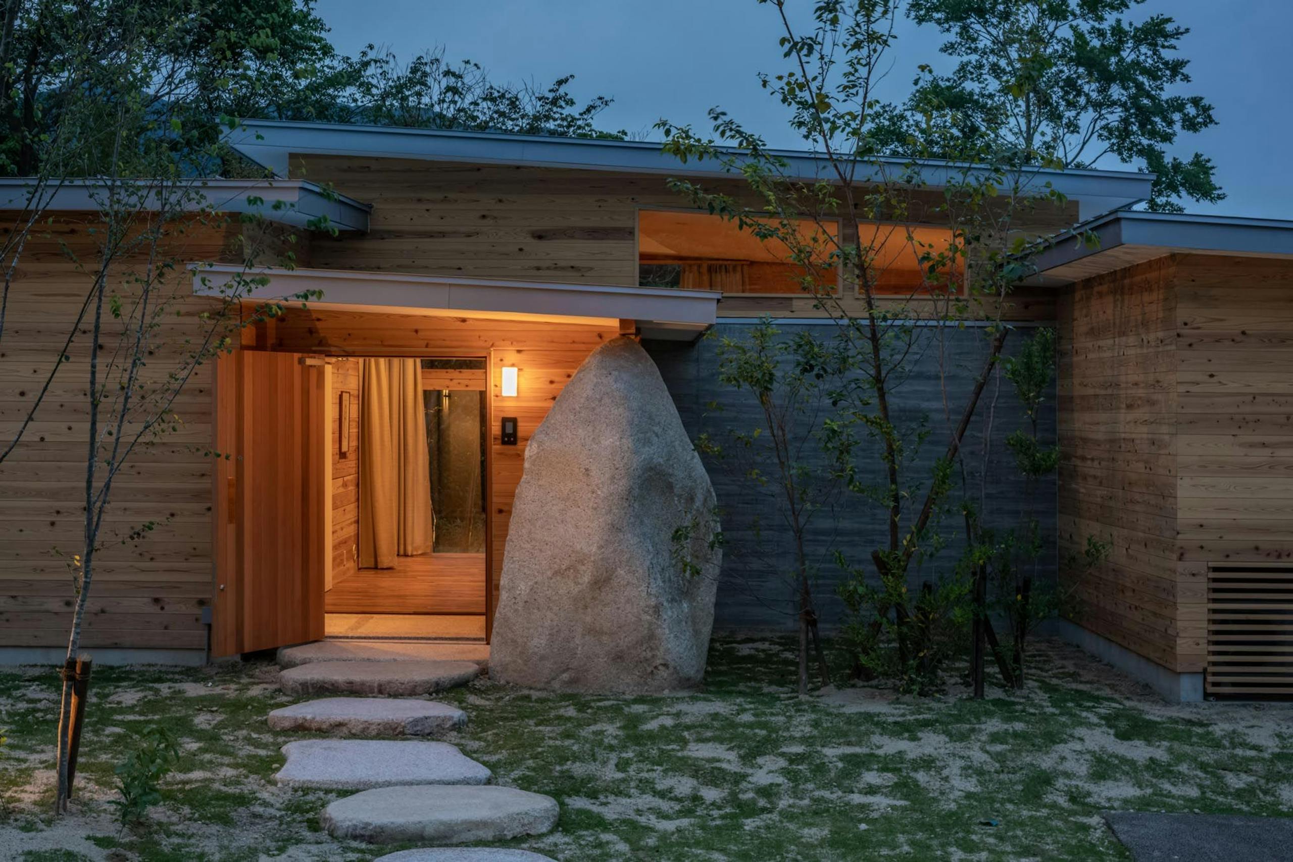 そんな長閑な場所にある素粋居には、「土」「石」「漆喰」「木」「漆」「和紙」「硝子」「鉄」の8つの素材をテーマにした12棟の宿泊棟を用意。