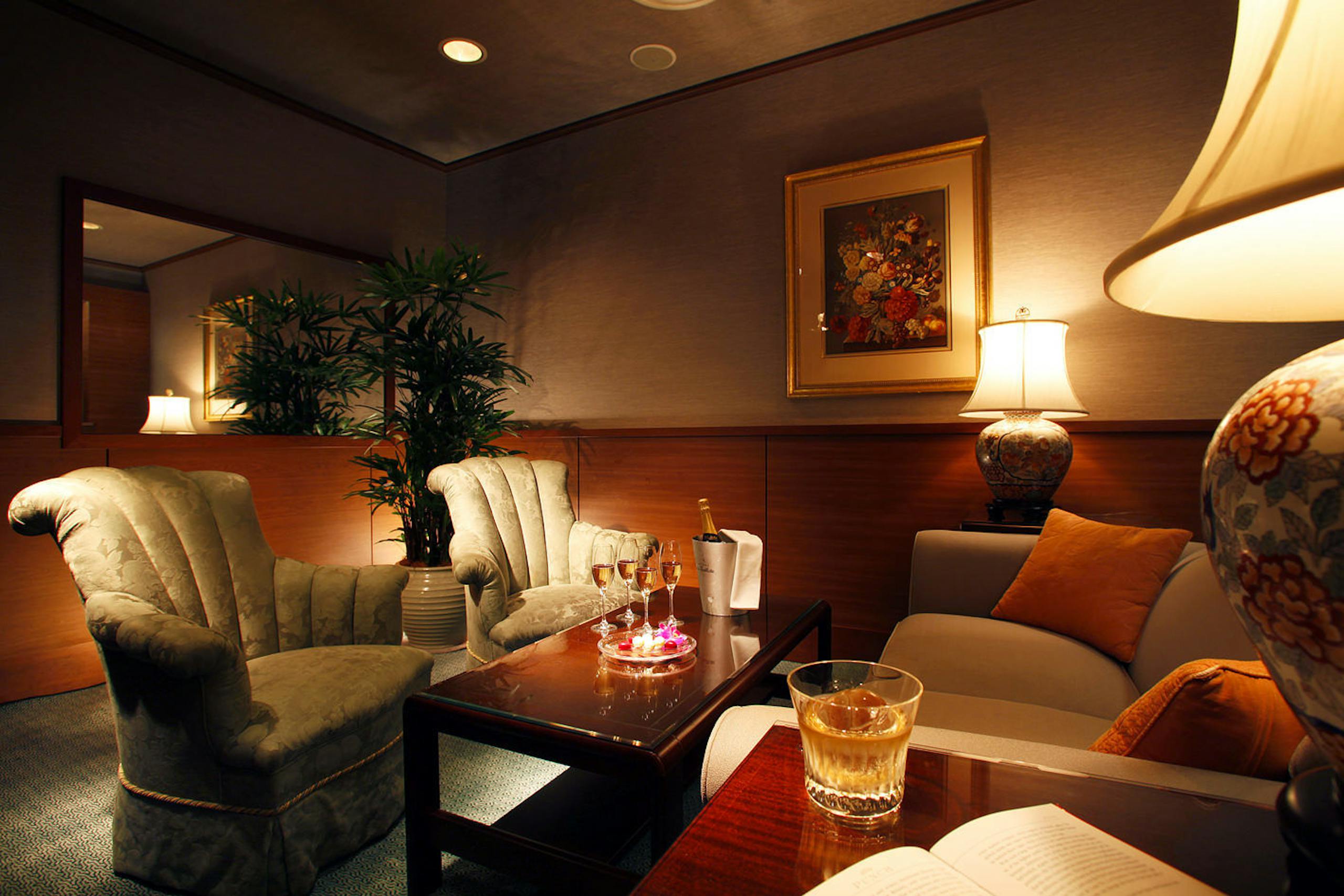 『ホテル椿山荘』には、エレガントなアホガニー調に統一された、メインバー「ル・マーキー」があります。ヨーロッパのセレブの邸宅のような、重厚で落ち着いたバーです。