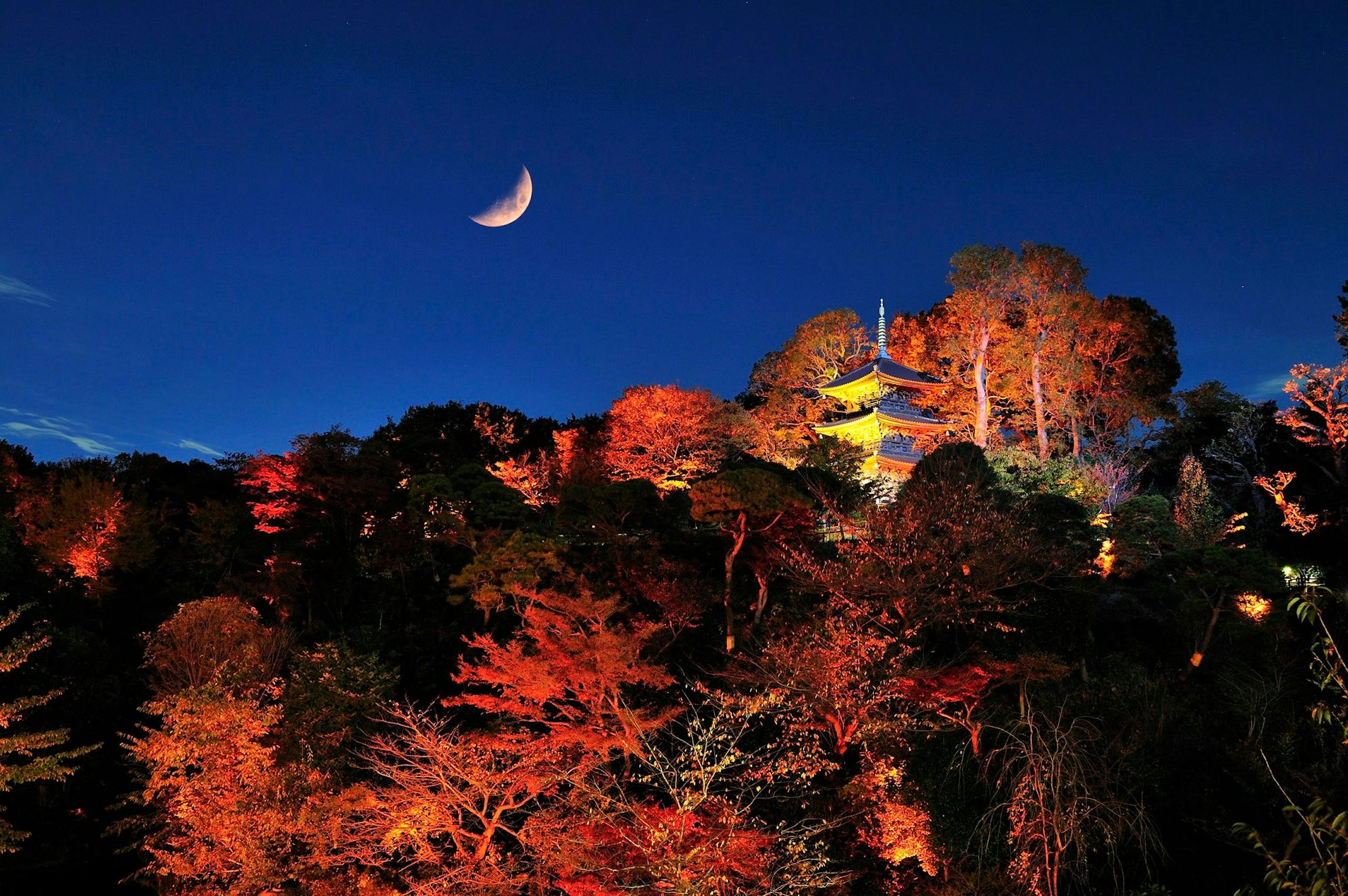また、夜はお庭がライトアップされ、不思議な美しさです。ライトアップの庭は日没から23時までみることができますよ。