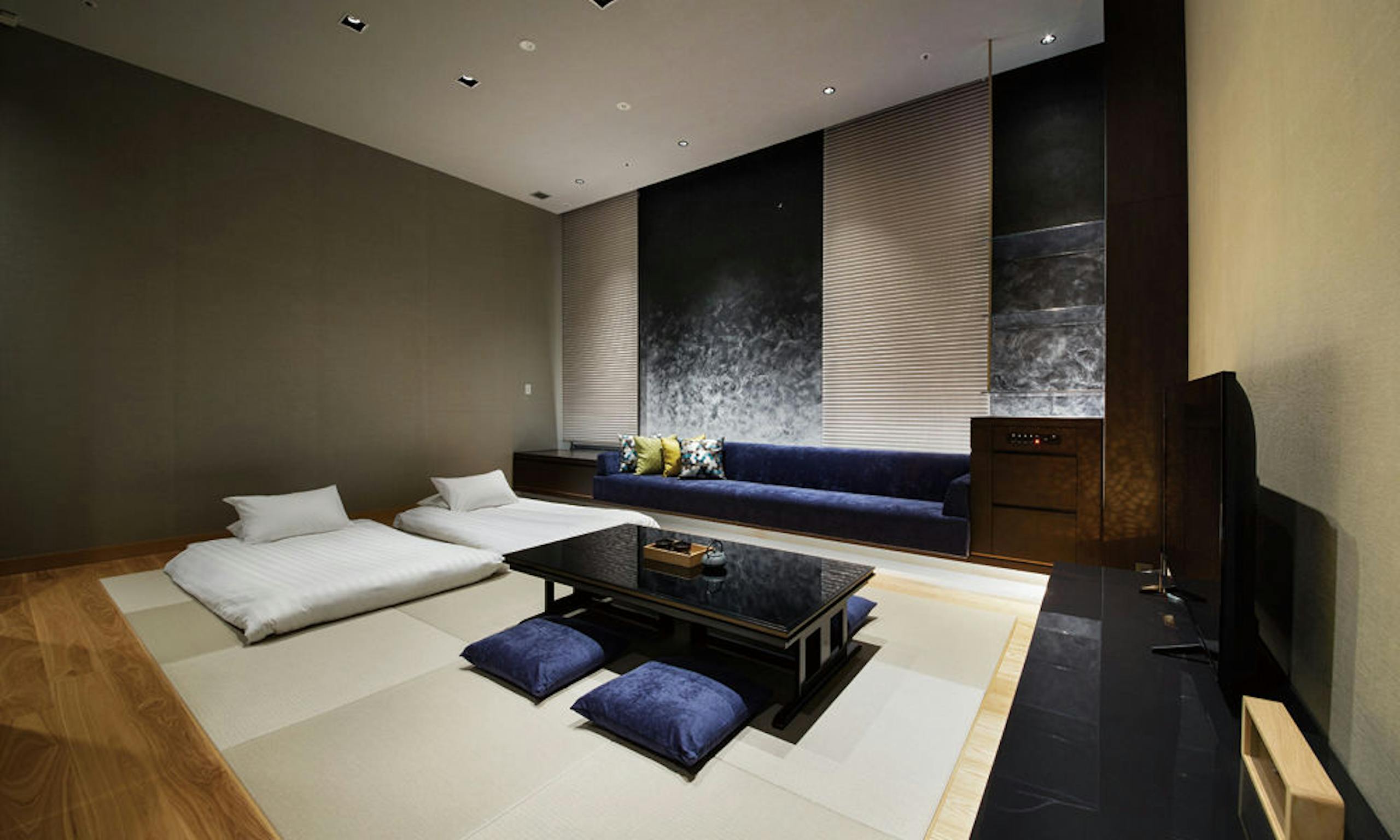 他にも、アメリカ村をイメージした「ROOM AMEMURA」、和モダンで落ち着きのある「ROOM RIKYU」などを用意。(上記の客室は「ROOM AMEMURA」)