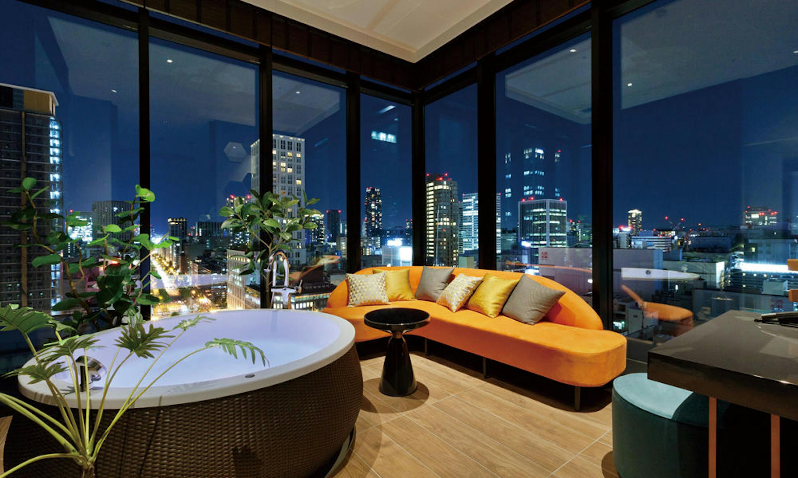 こちらは、御堂筋を見渡せるジャグジーが付いた「ROOM MINAMI」。夜景を見ながらのバスタイムは、より贅沢感を得られますね。