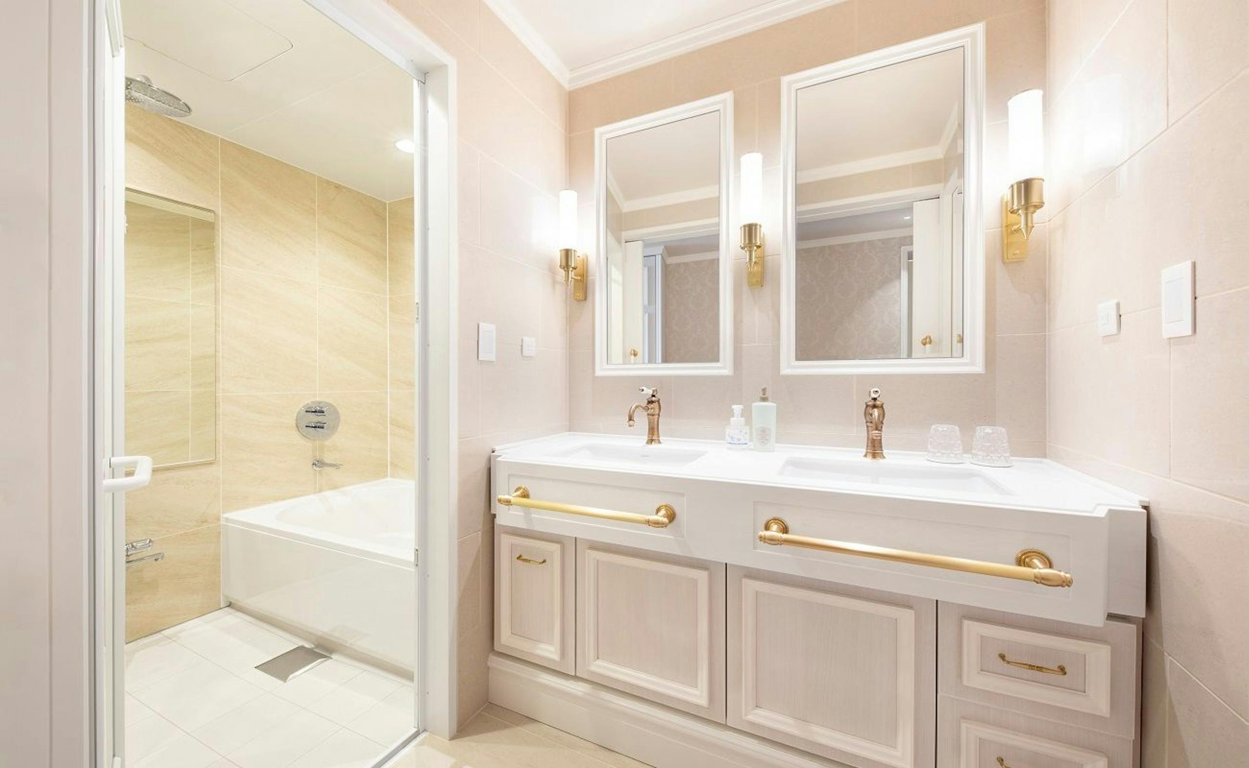例えば、女優ミラー付きのドレッサーデスクを備えていたり、ツインルームには洗面台を2つ設けたりしています。