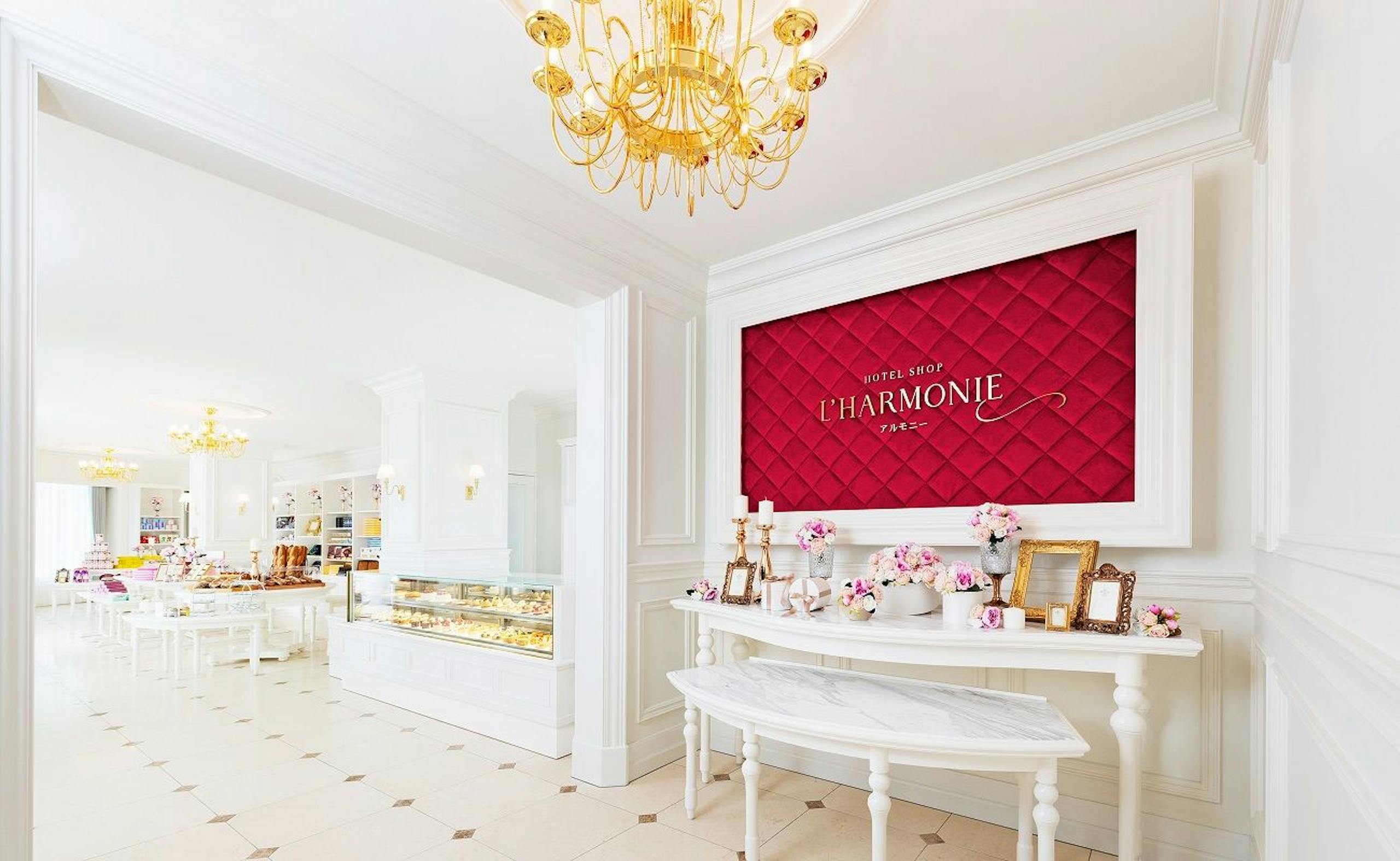 ロビーの一角にあるホテルショップ「アルモニー」では、季節のケーキや焼き立てのパン、宝塚歌劇のグッズなど販売しています。