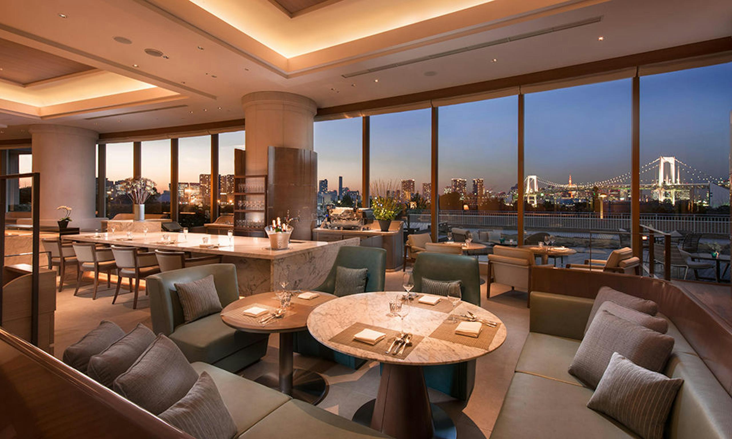 ウェスティンホテル東京は、レストランからの眺望も抜群!こちらは、美しい夜景も楽しめるフレンチレストラン「ビクターズ」。
