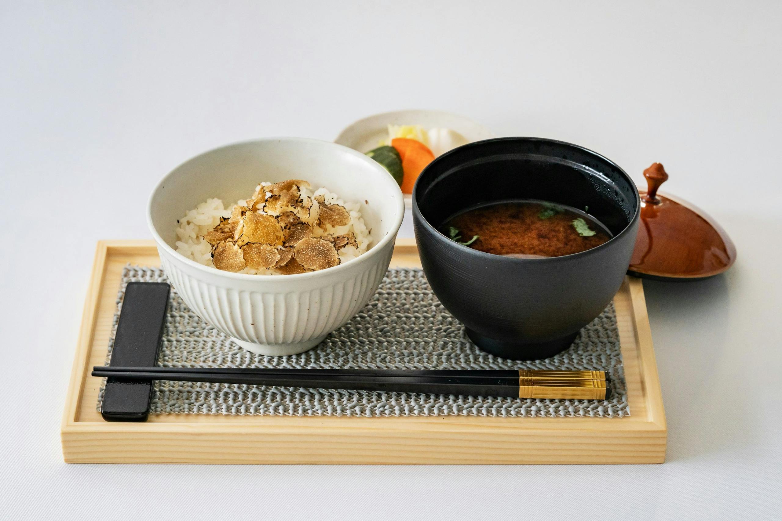こちらのメニューは、『三輪 湯河原』のシグニチャーディッシュ「トリュフご飯」。これほど贅沢なご飯は、中々お目にかかれませんね。