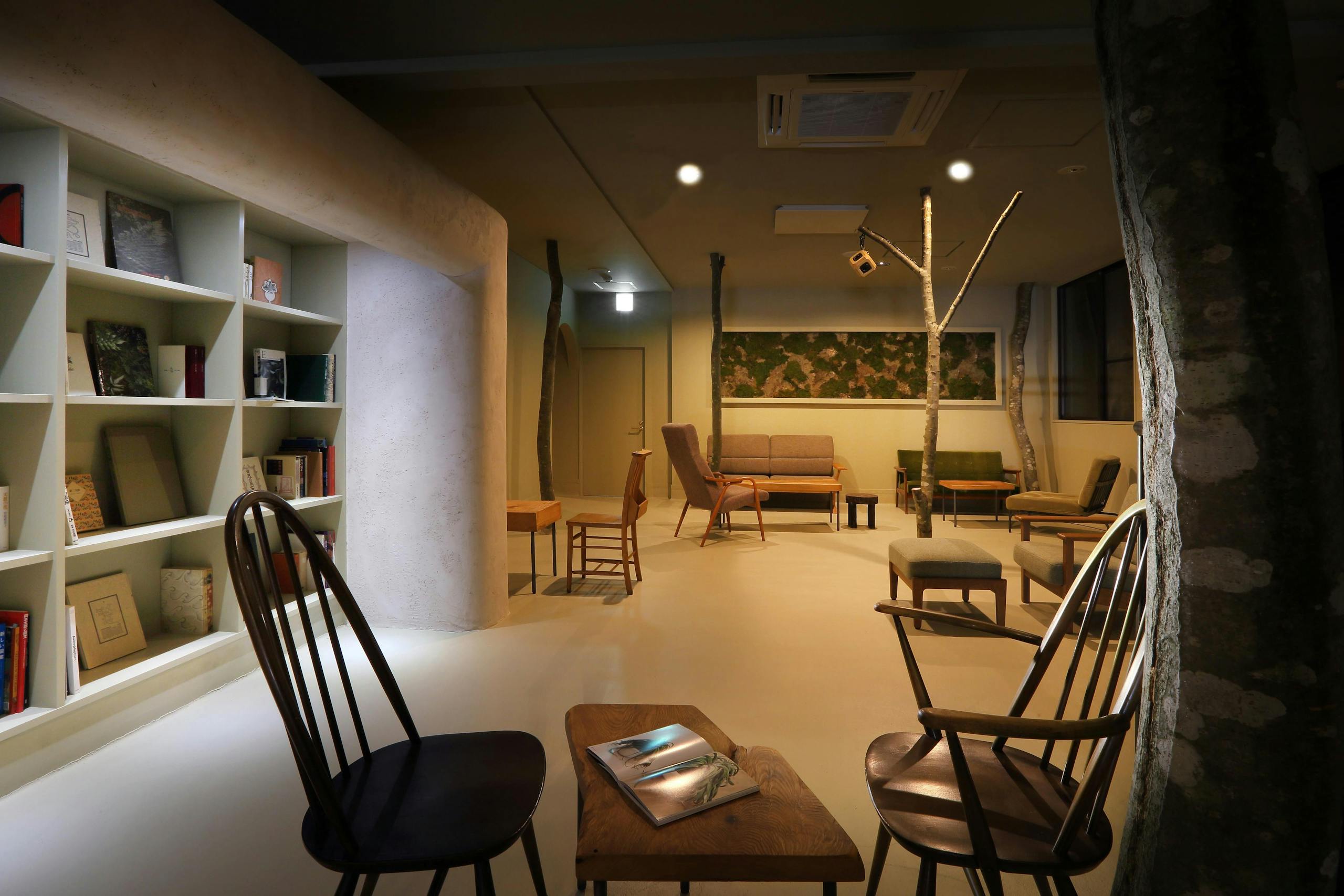 カフェのような心地良い空間となっていて、柱のように立ち並ぶブナの木がより自然を身近に感じさせます。