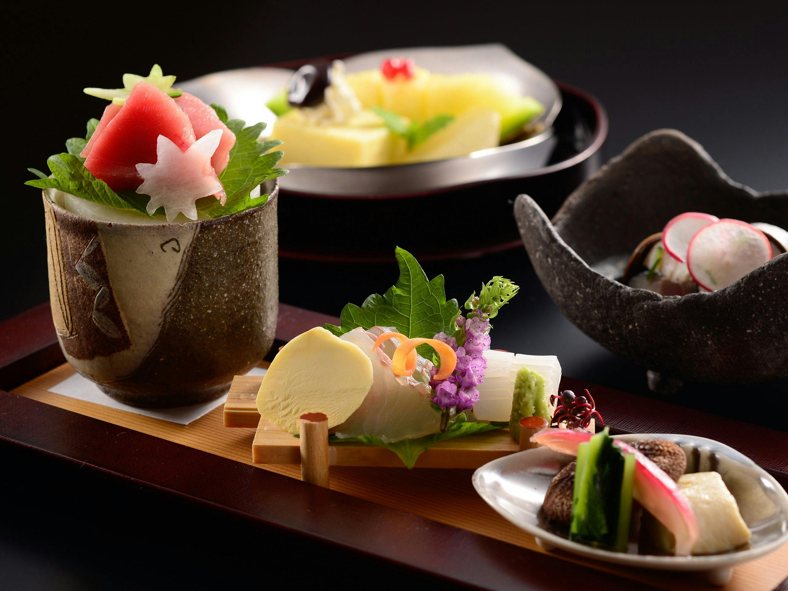 料亭旅館としても知られる「つつじ亭」では、旬の素材を活かした月替わりの懐石料理を用意。