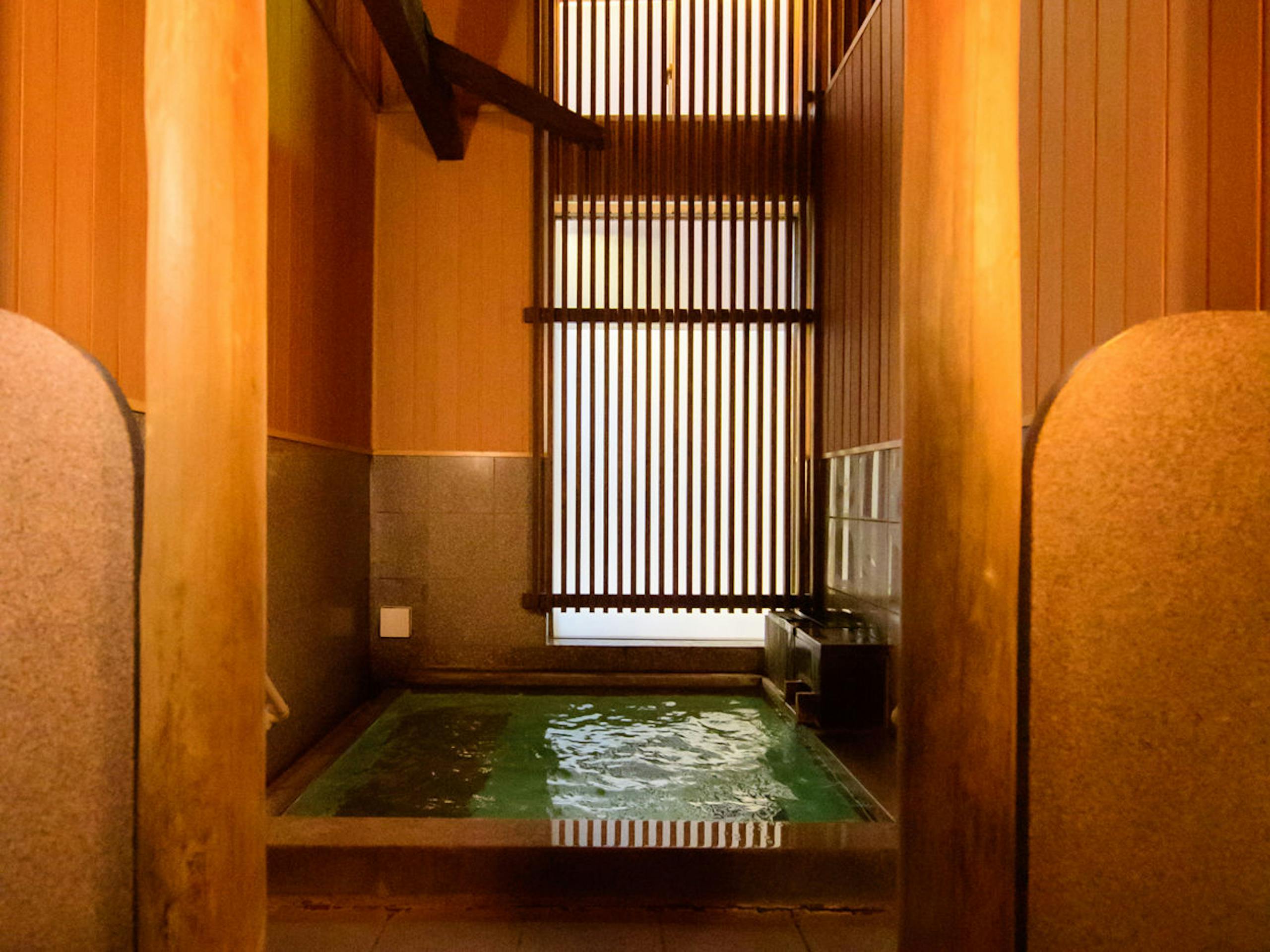 館内には3つの貸切風呂を設けていて、草津の中で最も湧出量が多い「万代鉱源泉」、地蔵地区で親しまれてきた「地蔵源泉」の2種類を堪能できますよ。