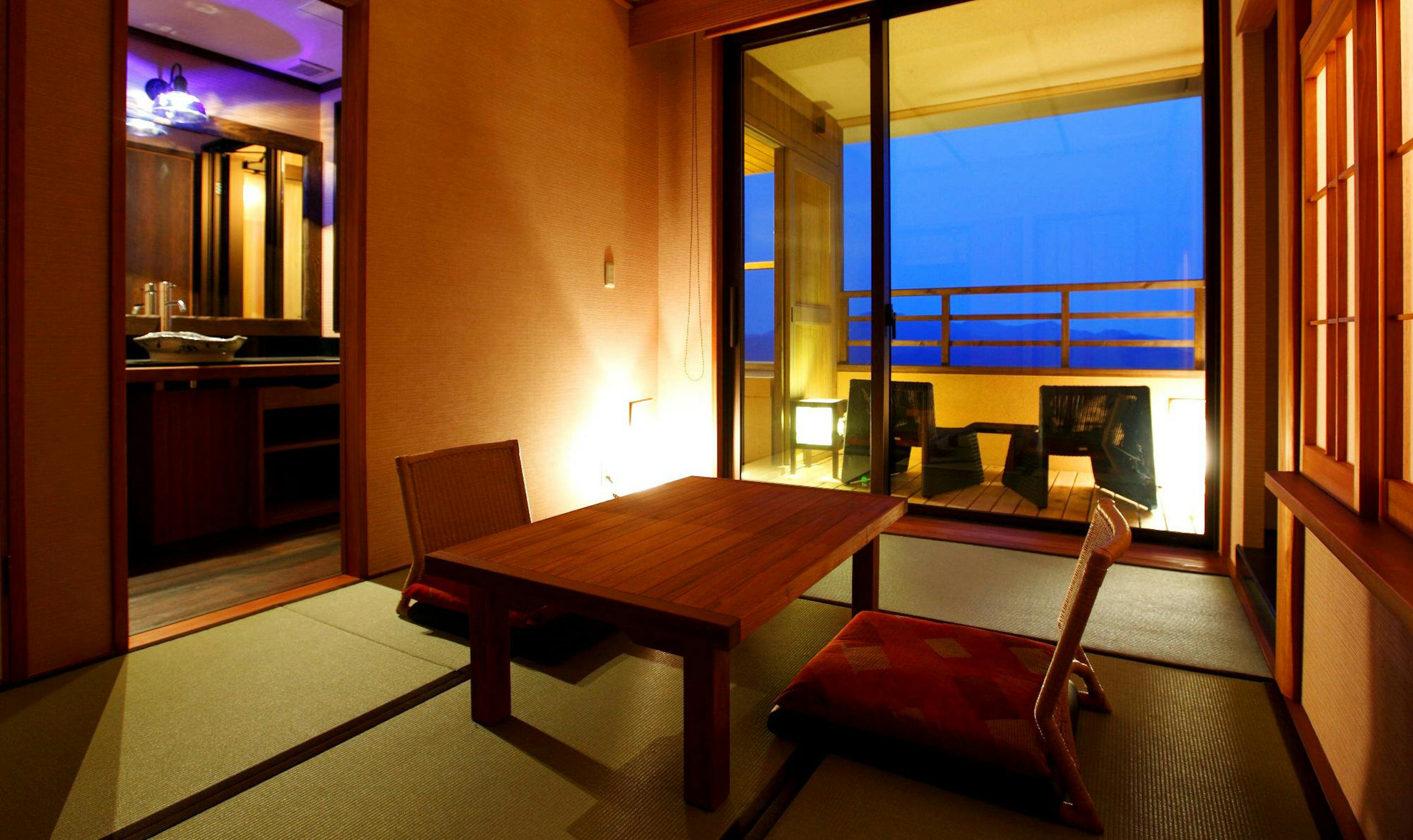 源泉掛け流しの温泉露天風呂が付いていて、夕食・朝食を客室でいただけるのも魅力的なポイントですね。