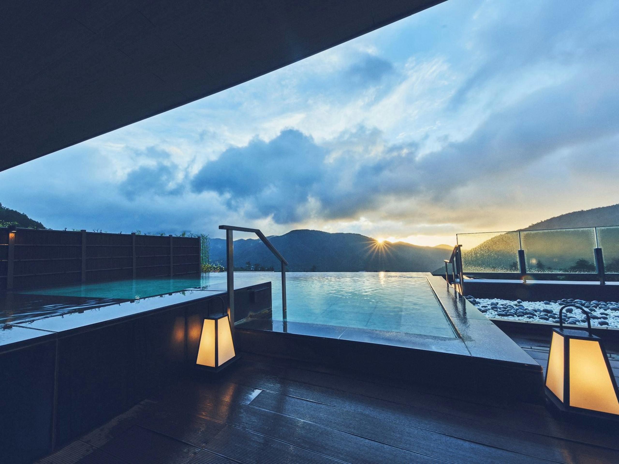 流行りのインフィニティ温泉となっていて、まるで空に浮いているような感覚も楽しめますよ。